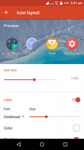 اکنون گزینه icon layout را انتخاب و مانند تصویر زیر سایز را 115 بگذارید